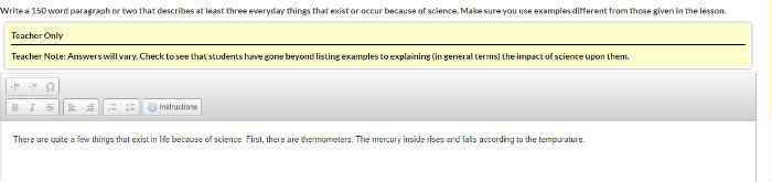 Parents must evaluate labs, projects, and other free-form responses. Every day or two, I check the Grading Tasks tab in my parent account. By clicking on a question to grade, I can see the corresponding reading and a Teacher Only section that offers guidance for grading.