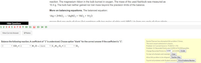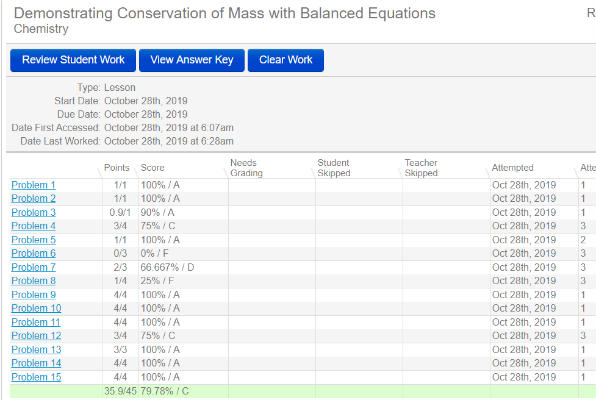 I can click on each problem number to see her most recent response to that question. If necessary, I can send her a note about the problem and even clear her work so she can try again.