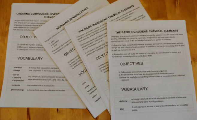 Although my younger daughters have completed some high school level work already, the Integrated Physics and Chemistry course is quite challenging for them. None of us know for sure whether the difficulty is because of the format or simply because they are relatively new to high school science.