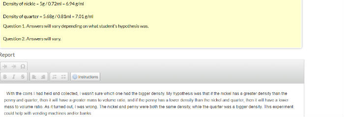 In addition to creating a data table for each experiment, they write a paragraph or more to explain what they learned. This is excellent preparation for writing up full lab reports.